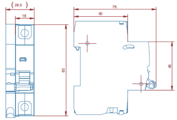 產(chǎn)品采用 35mm 標準導軌安裝,單模尺寸為:76×85×36(mm),未標注公差:±0.5mm。如下列圖所示(單位:mm):