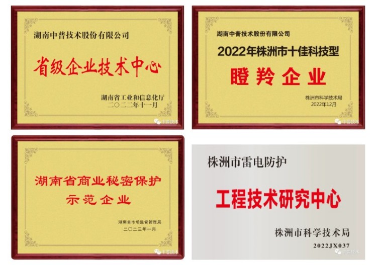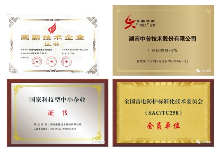 公司是國家高新技術(shù)企業(yè)、國家級“專精特新”小巨人企業(yè)(2022年7月1日-2025年6月30日)、湖南省中小企業(yè)知識產(chǎn)權(quán)貫標單位、湖南省先進制造專板掛牌企業(yè)、湖南省商業(yè)秘密保護示范企業(yè)、株洲市科技型瞪羚企業(yè)、株洲市“中小企業(yè)100強”單位,是中國氣象學會雷電防護委員會委員單位、中國建筑學會雷電委員會會員單位、湖南省氣象學會常務(wù)理事單位。同時,公司還擁有湖南省住房和城鄉(xiāng)建設(shè)廳頒發(fā)的特種工程(特種防雷)專業(yè)承包資質(zhì)、安全生產(chǎn)許可證。