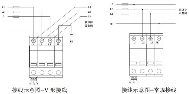 1模塊結構浪涌保護器接線圖如安裝接線圖所示: