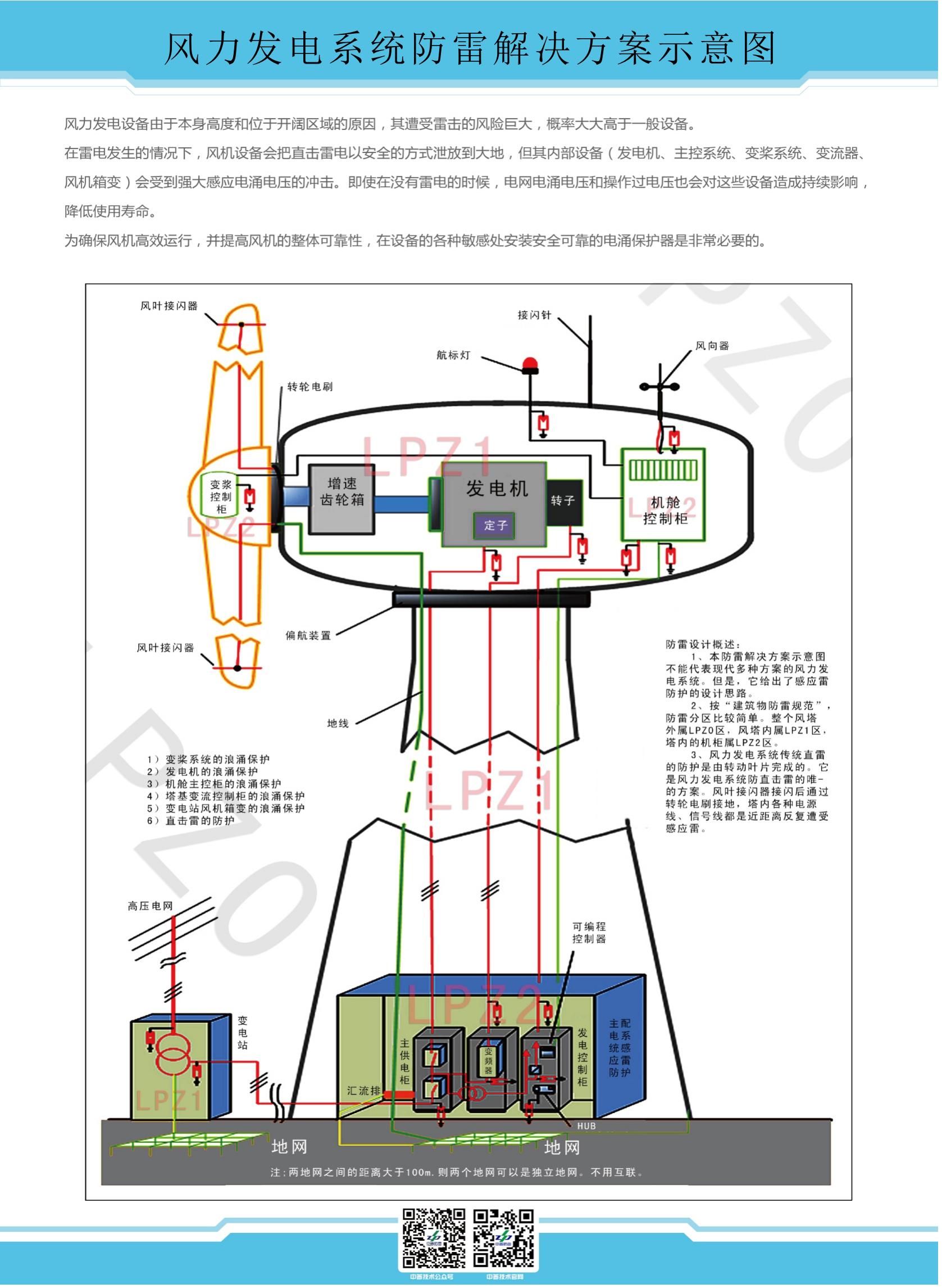 風(fēng)機內(nèi)部集成了大量的電氣,電子設(shè)備,例如:主控柜,動力柜、信號柜、發(fā)電機,驅(qū)動裝置,變頻器,傳感器,以及相應(yīng)的總線系統(tǒng)等。這些設(shè)備集中在一個狹小的區(qū)域里,電涌都會給風(fēng)機機組帶來嚴(yán)重的損壞。保障這些電氣裝置的正常工作是非常重要的,雷電流耦合或開關(guān)操作引起的過電壓在這些裝置上都會導(dǎo)致嚴(yán)重損壞,引起整個風(fēng)機的停機。因此,風(fēng)機的雷電和過電壓保護非常重要。