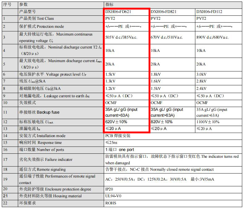 • DXH06-FD621          10-20kA 交流385V直流505V     中普PCB板載防雷器