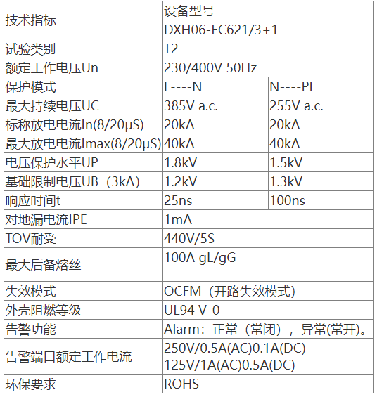 DXH06-FC621/3+1          20-40kA 交流三相385V      中普PCB板載防雷器