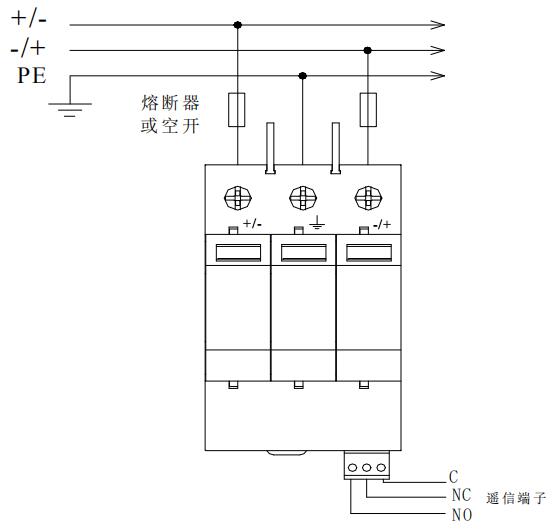 6.2 防雷器前端應(yīng)串聯(lián)合適的熔斷器或空開。