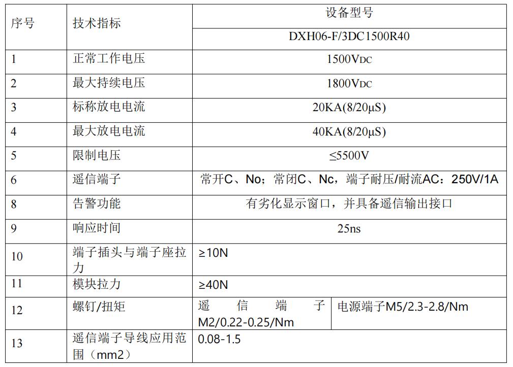 DXH06-F/3DC1500R40是帶有遙信報警裝置、帶有隔離板的直流防雷模塊。產(chǎn)品主要用于光伏發(fā)電設(shè)備的防雷以及操作過電壓的保護(hù)。