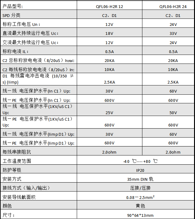 QFL06-H2R系列          13mm四線12/24V          中普信號防雷器
