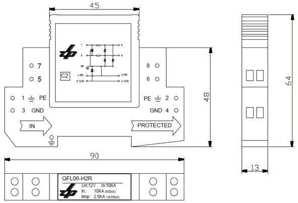 QFL06-H2R SPD模塊,寬度為13mm節(jié)約安裝空間,用于直接或間接屏蔽接地的對地隔離的平衡接口一對線保護(hù),適用0A-2及后續(xù)分區(qū)的防雷保護(hù),SPD模塊可插拔。